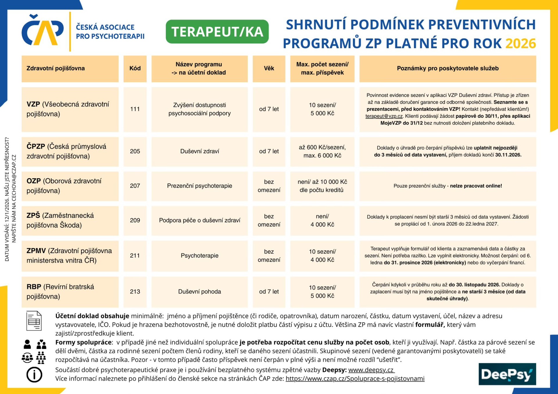 Od České průmyslové zdravotní pojišťovny (205) - Preventivní program "Duševní zdraví" (ČPZP přispívá 600 Kč za 6 sezení - tedy až 6.000 Kč)